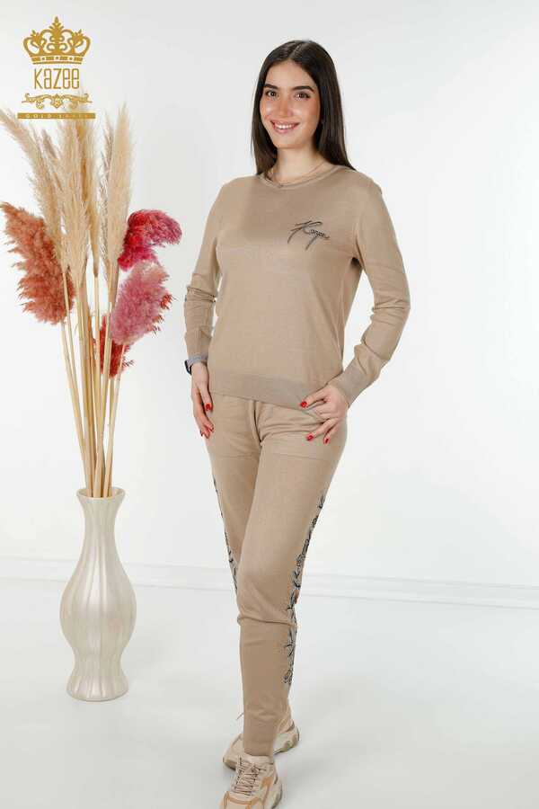 14GG Prodotto in viscosa Elite Maglieria Tuta da tuta Tasca Dettagliata Pietra ricamata Fiore Ricamo Produttore di abbigliamento femminile - 16561 | Tessuto reale