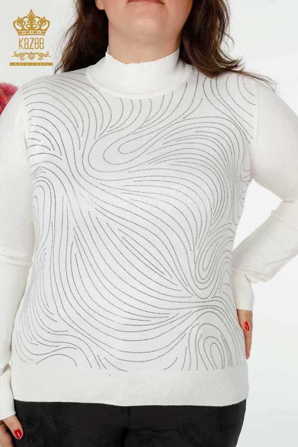 14GG Product Viscose Elite Knitwear Stone Brodé Col montant Fabricant de vêtements pour femmes - 30018 | Vrai textile