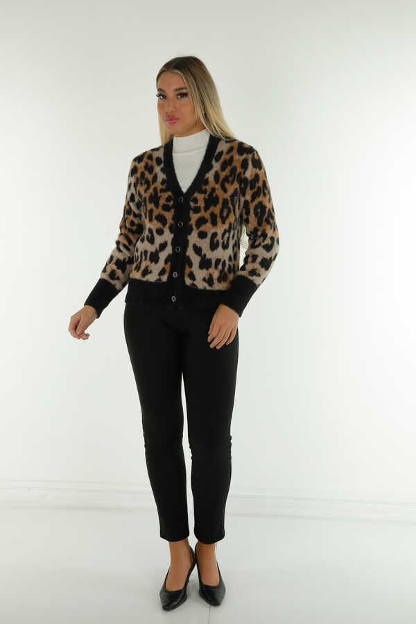 7GG Produzierter Woll-Viskose-Cardigan Leopard Angora Damenbekleidungshersteller - 30630 | Echtes Textil