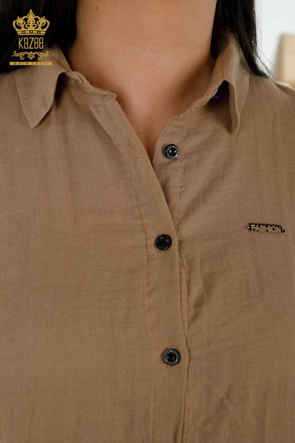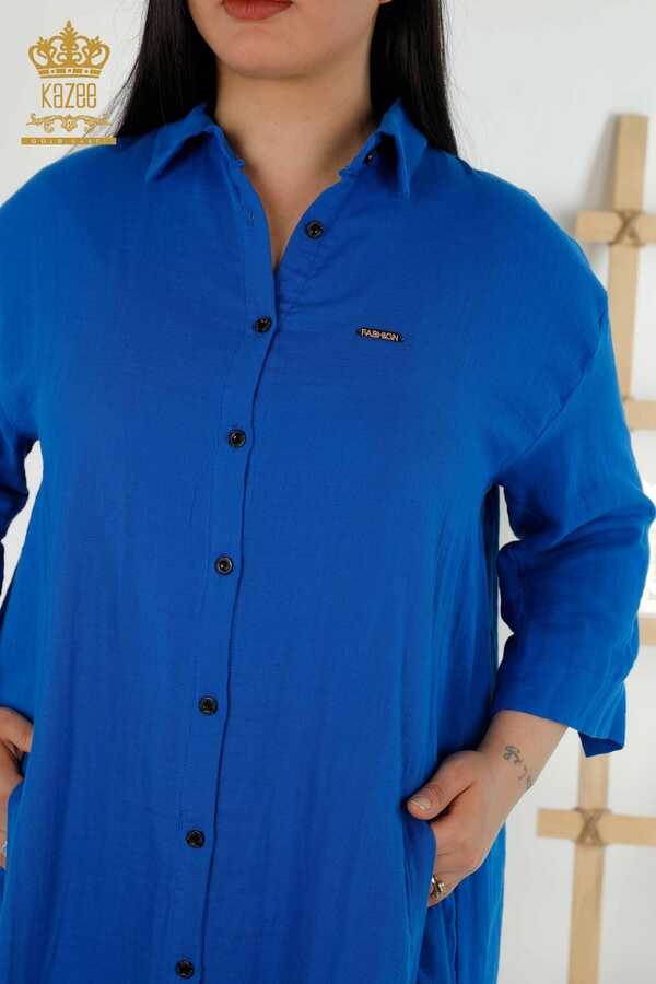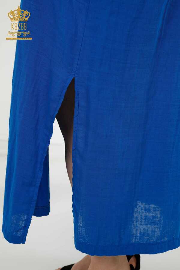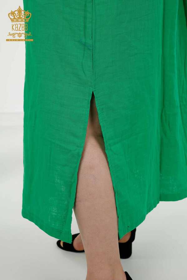Vestido Hecho con Botón de Tela de Lycra de Algodón Detalle del Fabricante de Ropa de Mujer - 20405 | Textiles reales