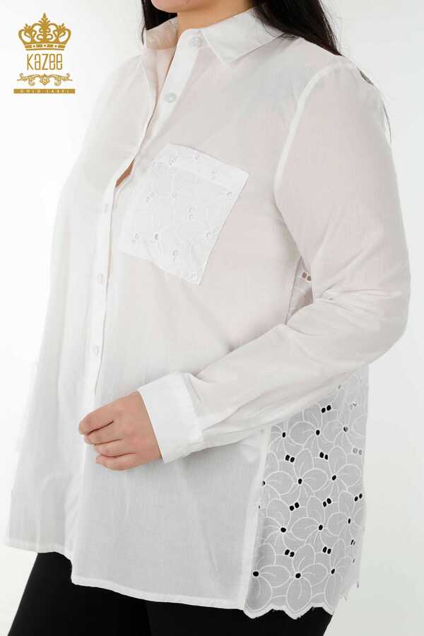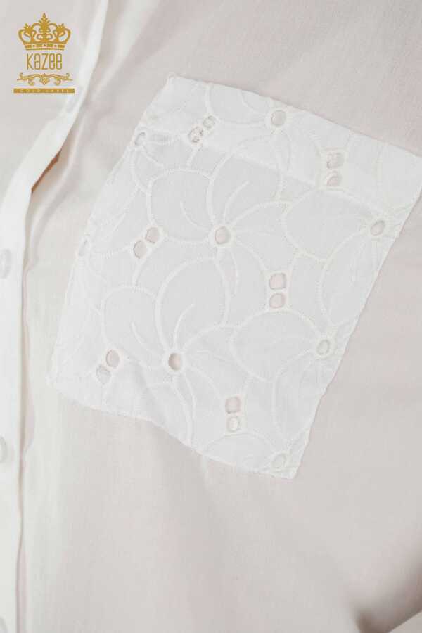 Hemd aus Baumwoll-Lycra-Stoff mit Spitze, detaillierten Taschen, Hersteller von Damenbekleidung – 20319 | Echtes Textil