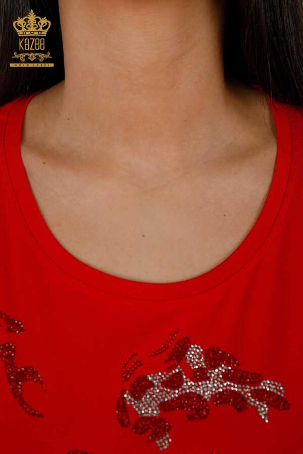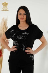 Blusa hecha de tela de viscosa con bordado de piedra y cuello ciclista de manga corta para mujer Fabricante de ropa - 79066 | Textiles reales
