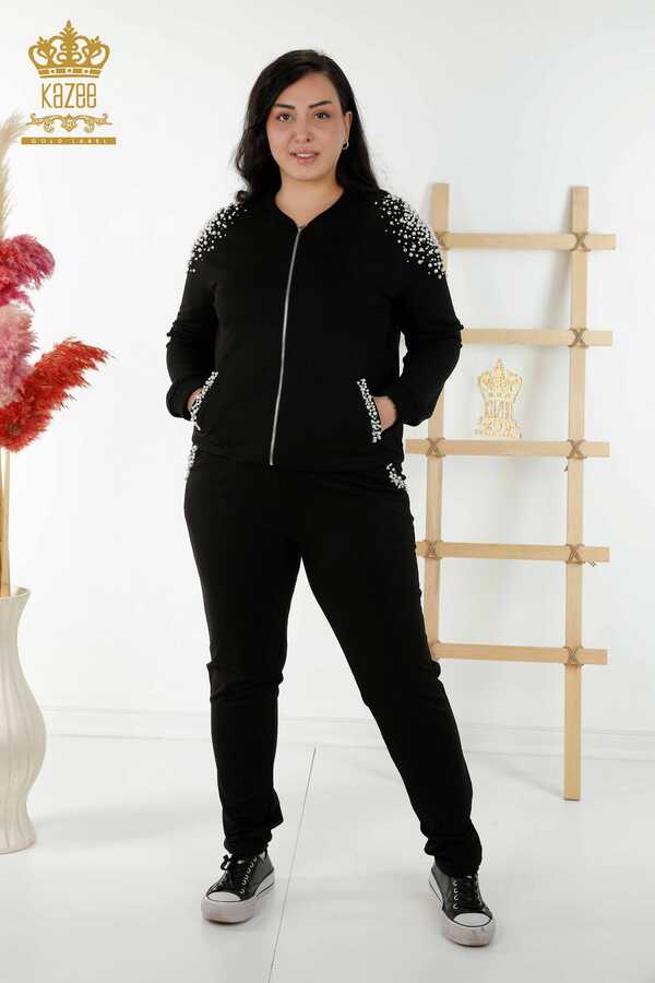 Traje de chándal de buceo y dos hilos Fabricante de ropa de mujer con cremallera y bordado de piedra con cuentas - 17536 | Textiles reales