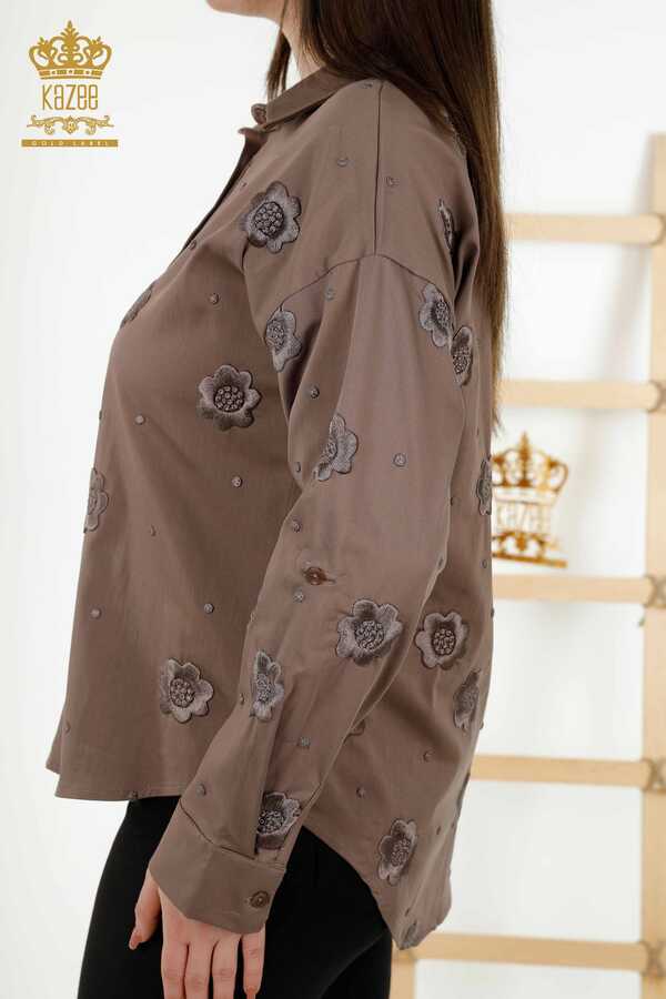 Fabriqué avec du tissu en coton lycra Chemise - Motif floral - Fabricant de vêtements pour femmes - 20394 | Vrai textile