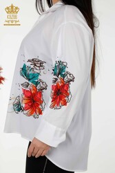 Camicia Realizzata In Tessuto Lycra Di Cotone Con Motivo Floreale Ricamato In Pietra Abbigliamento Donna - 20223 | Tessuto reale