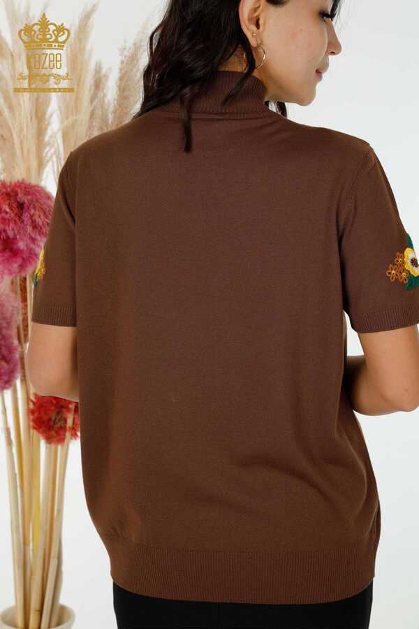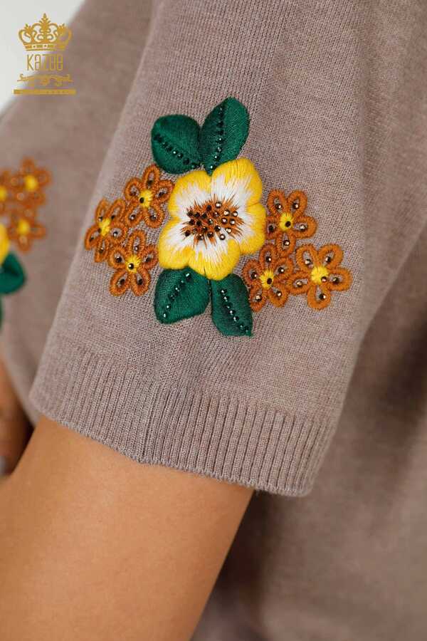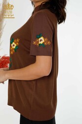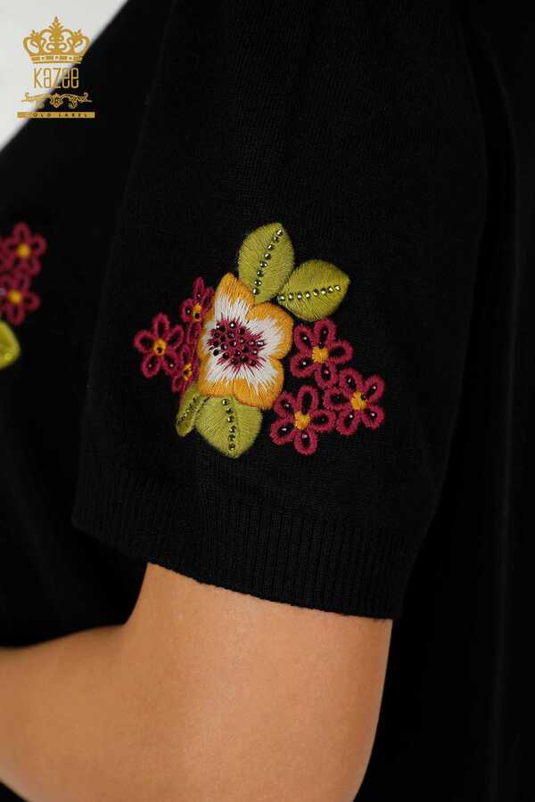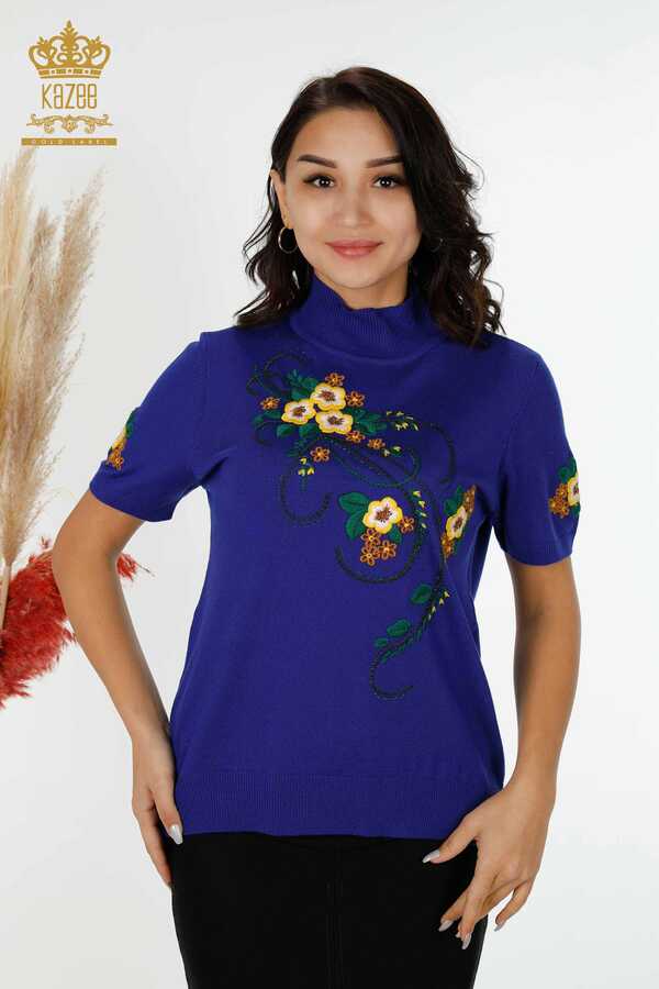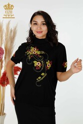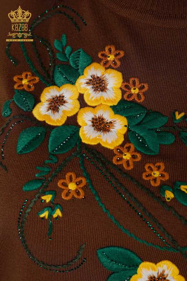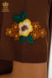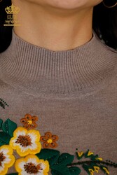 لباس بافتنی ویسکوز الیت تولیدی 14GG سنگ دوزی گلدار یقه ایستاده تولید کننده پوشاک زنانه - 16811 | نساجی واقعی