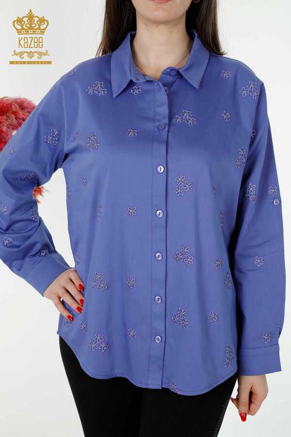 پیراهن از پارچه لاکرا نخی با گلدوزی تولیدی پوشاک زنانه - 20350 | نساجی واقعی
