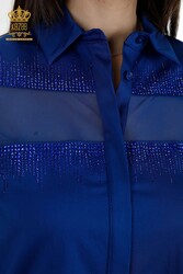 پیراهن تول با جزئیات تولید کننده لباس زنانه با پارچه لاکرا نخی - 20250 | نساجی واقعی