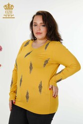 بلوز تولیدی پوشاک زنانه یقه بلند آستین بلند دوزی سنگ ویسکوز - 79043 | نساجی واقعی