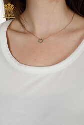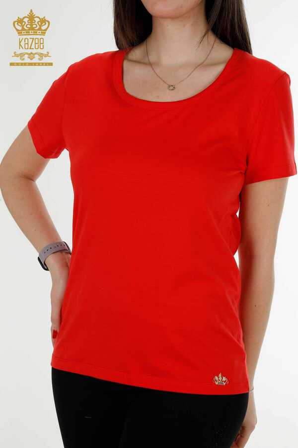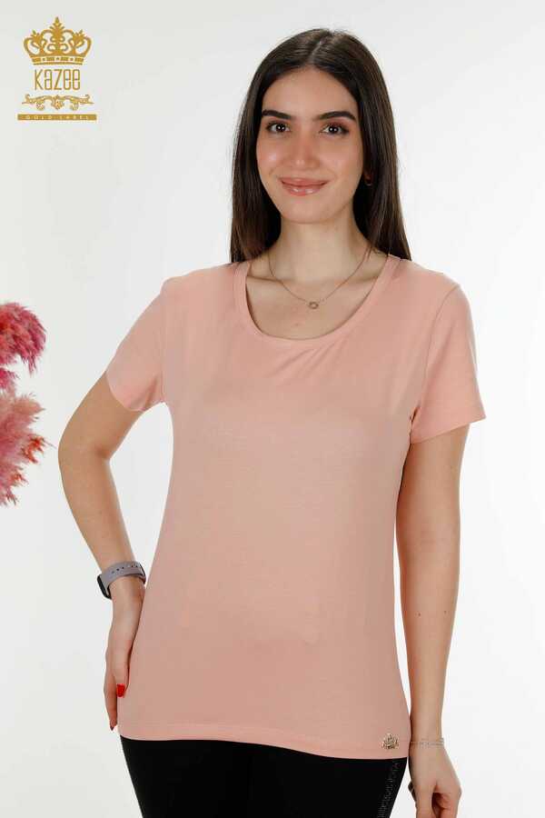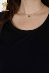 بلوزة مصنوعة من قماش فسكوزي ياقة ركوب الدراجات بأكمام قصيرة مُصنِّع ملابس نسائية - 79177 | نسيج حقيقي