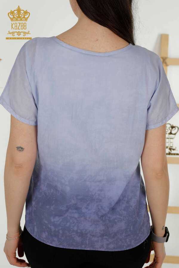 بلوزة مصنوعة من قماش الفيسكوز المطرز بياقة الطاقم بأكمام قصيرة الشركة المصنعة للملابس النسائية - 79174 | نسيج حقيقي