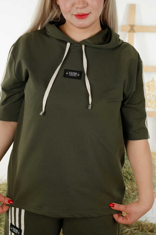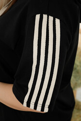 Made of Scuba and Two Threads Tracksuit - Striped - Short Sleeve - Women's Clothing Manufacturer - 17546 | Real Textile