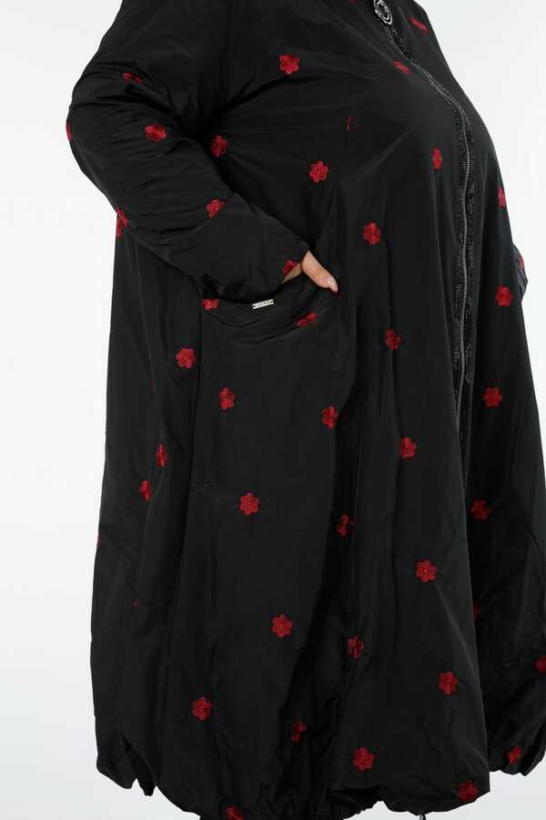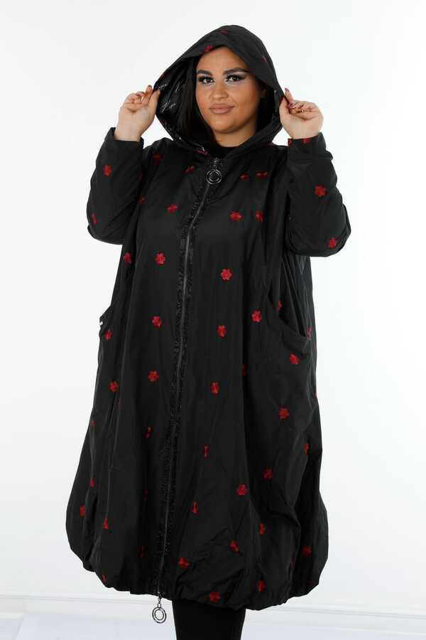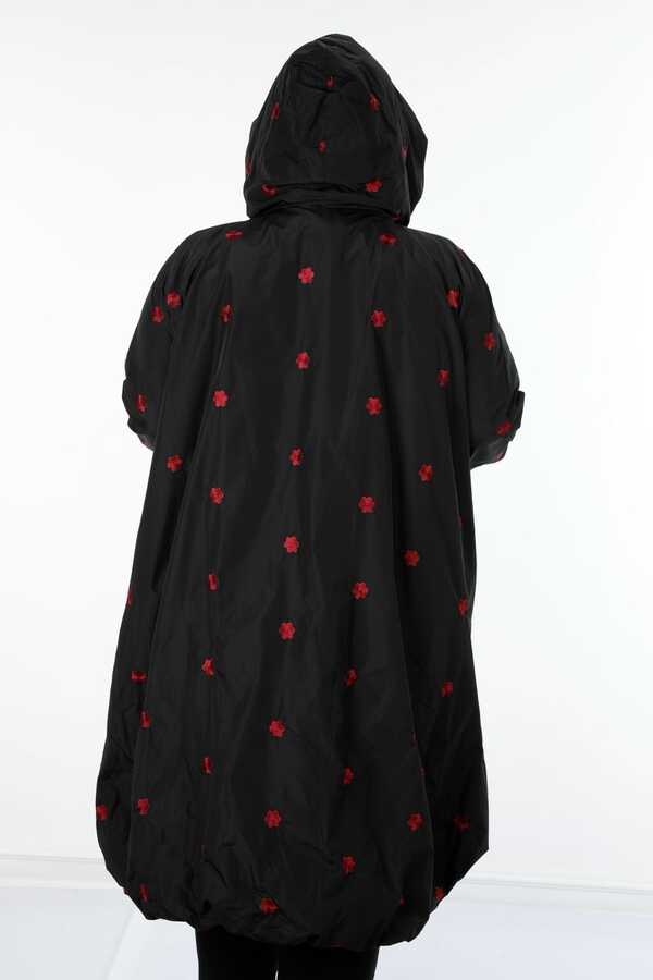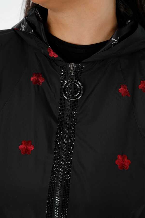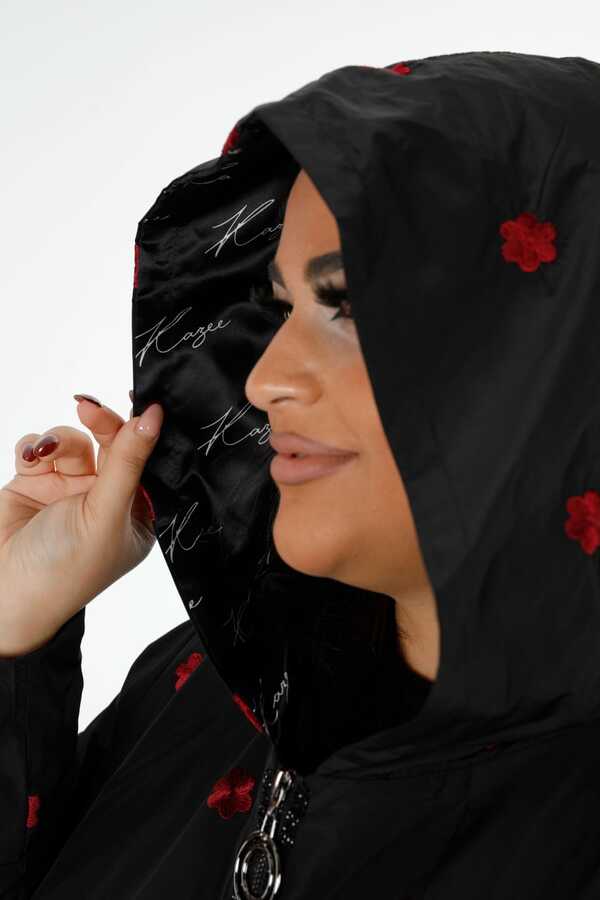 Su Geçirmez Paraşüt Kumaş İle Üretilen Yağmurluk Nakışlı Taş İşlemeli Kapüşüonlu Kadın Giyim Üreticisi - 7574 | Reel Tekstil