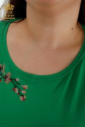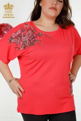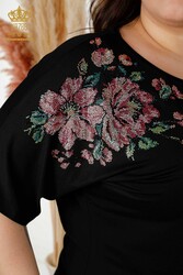 blusa realizzata in tessuto di viscosa Motivo floreale Colletto da ciclista ricamato in pietra Produttore di abbigliamento femminile - 79052 | Tessuto reale