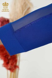 Chemisier en tissu viscose tulle détaillé col rond manches longues Fabricant de vêtements pour femmes - 79084 | Vrai textile