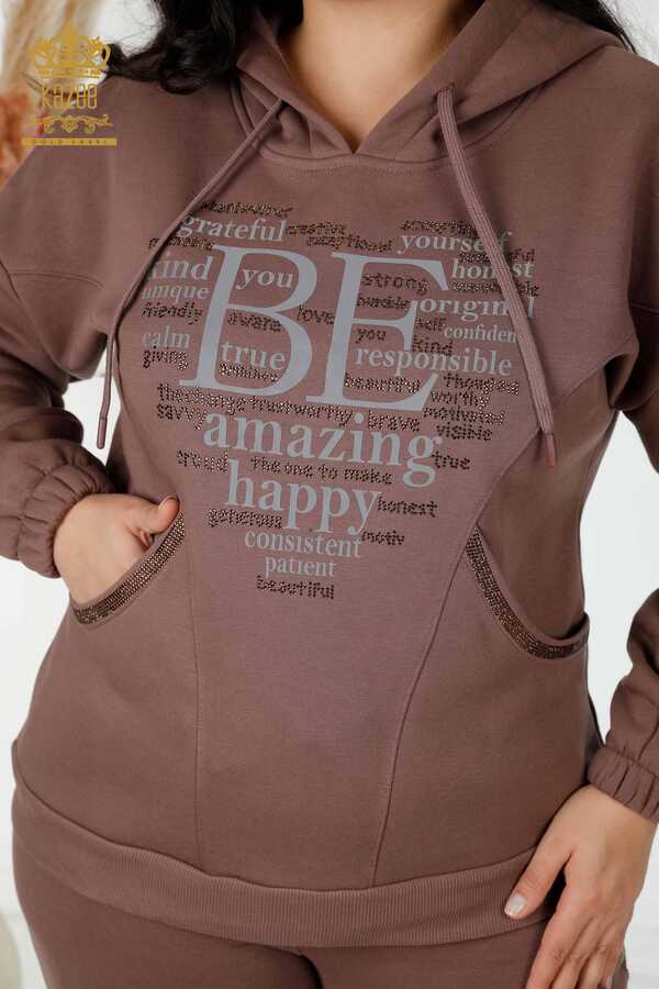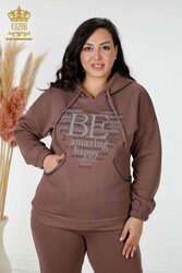 Tuta da ginnastica in scuba e due filati Produttore di abbigliamento da donna con cappuccio - 17469 | Tessuto reale