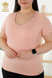 Blouse Made with Viscose Fabric Basic Logo Short Sleeve Women's Clothing Manufacturer - 79124 | Real Textile