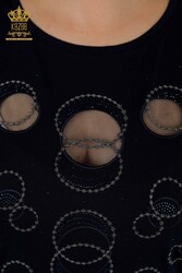 Блузка из вискозной ткани с вышитым камнем воротником для велоспорта с коротким рукавом Производитель женской одежды - 79094 | Настоящий текстиль